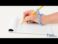 Just slide the small loop of the HandiWriter over the pencil, then slide the large loop around the wrist, and hold the charm in the palm of the hand with the ring and pinky finger. This easily pulls the pencil into the correct position promoting a Tripod grip.